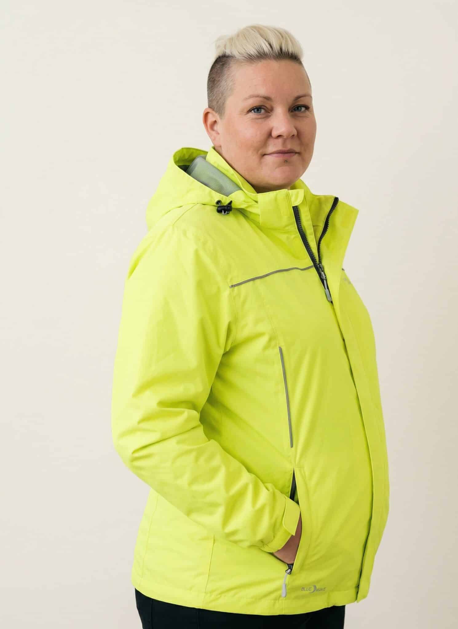Hergestellt aus 100% Polyester ist die Jacke nicht nur robust und pflegeleicht, sondern auch atmungsaktiv, sodass Feuchtigkeit nach außen entweichen kann. Die verschweißten Nähte verhindern das Eindringen von Wasser, selbst bei längerem Regen. Zudem lässt sich die Jacke kompakt verstauen und kann als praktische Tasche genutzt werden. Erhältlich ist die Klea auch in Übergrößen, sodass sie für alle Konfektionsgrößen geeignet ist.