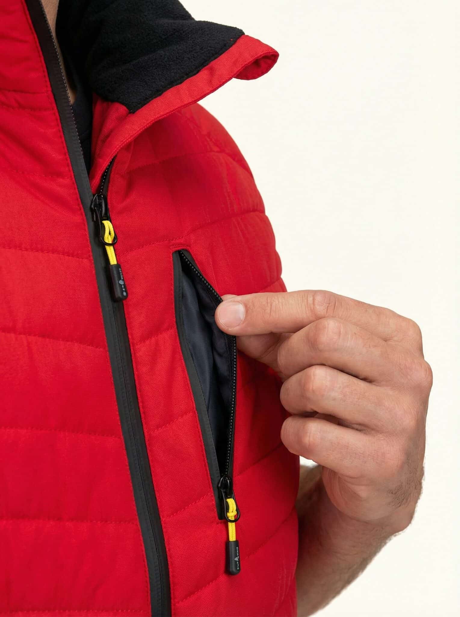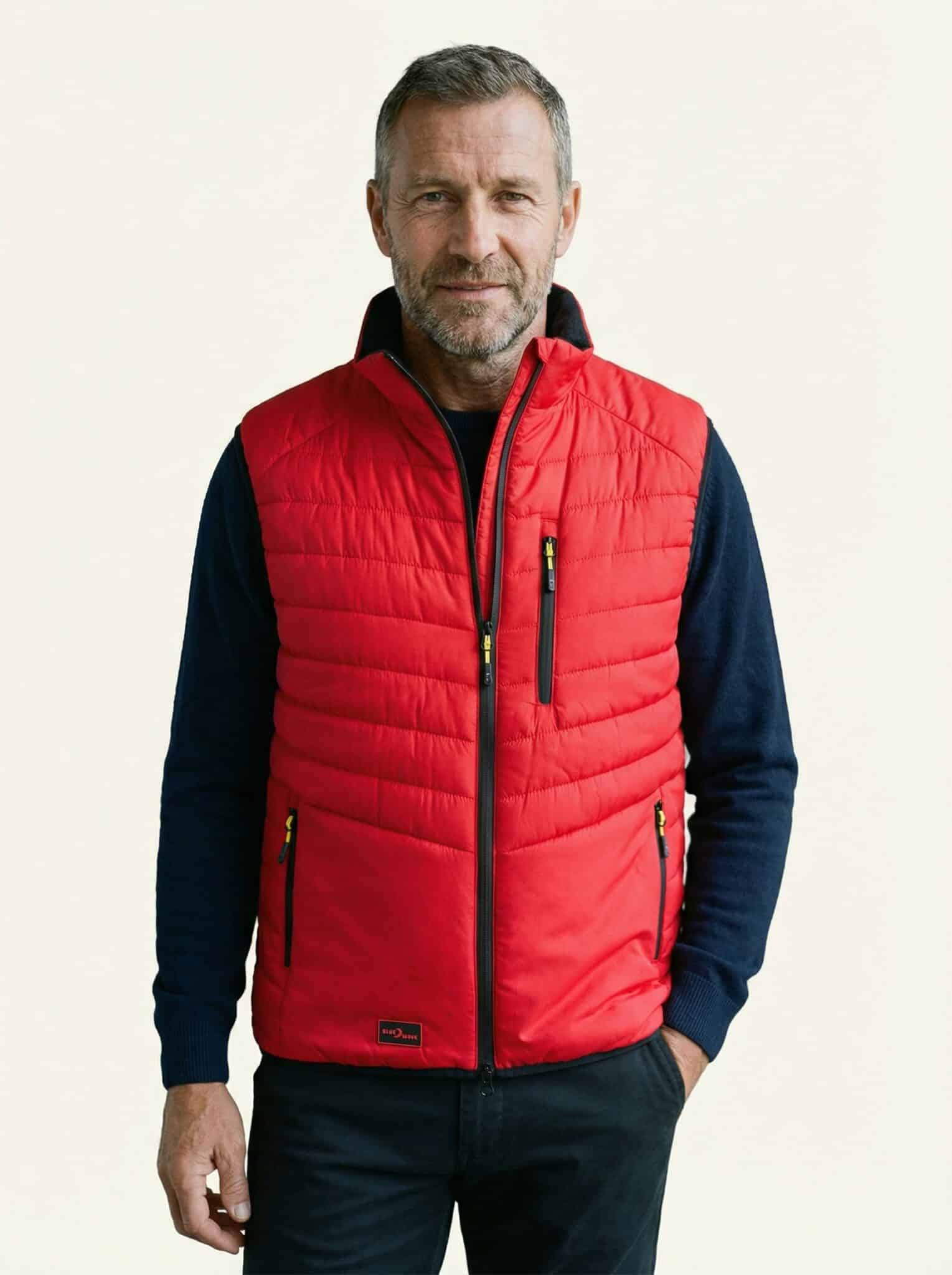 Die Weste ist für Herren konzipiert und bietet eine sportlich-schmal geschnittene Passform, die Bewegungsfreiheit und Komfort vereint.