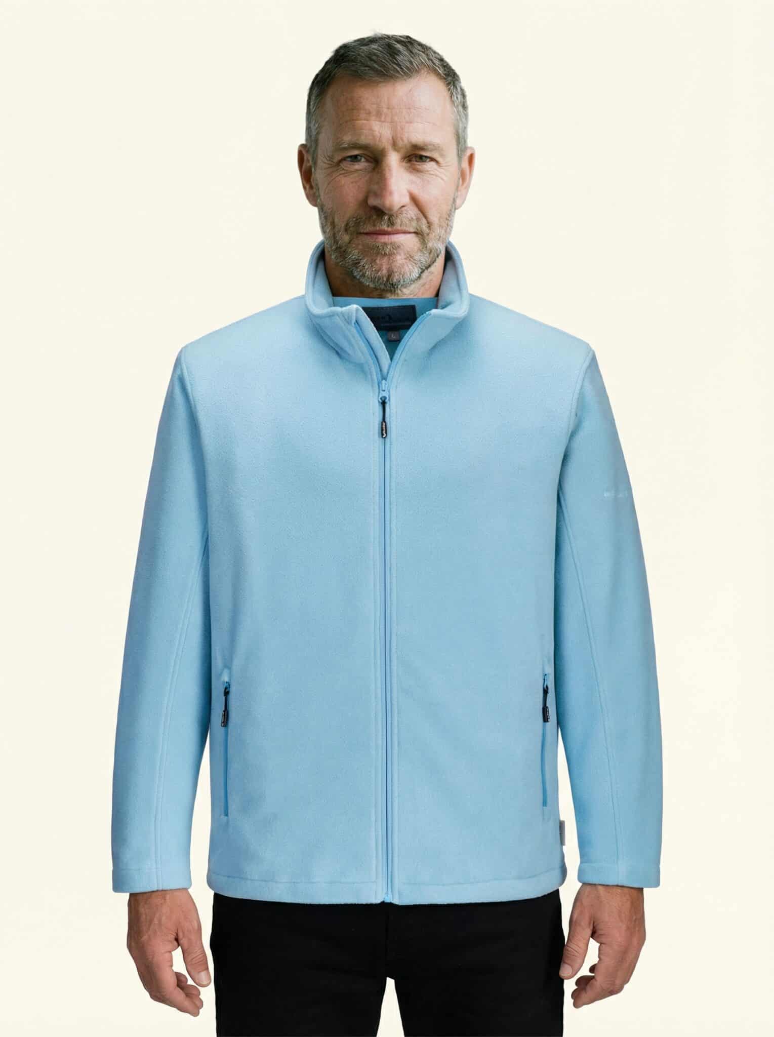 Die Lothar Fleecejacke besteht aus 100 % Polyester, was sie besonders robust und pflegeleicht macht. Das Material hält Ihnen auch an kühlen Tagen warm, ohne schwer zu wirken. Der Frontreißverschluss mit Kinnschutz sorgt für angenehmen Tragekomfort und schließt zuverlässig vor Zugluft. Elastikabschlüsse an den Ärmeln verhindern das Eindringen von kalter Luft und sorgen für eine gute Passform. Die praktische Brusttasche mit Reißverschluss bietet sicheren Stauraum für kleine Dinge, die Sie unterwegs griffbereit brauchen.